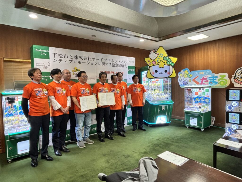 2025年12月15日(月)に山口県の下松市役所にて、シティープロモーション関する連携協定の締結を行い、下松市の公式マスコットキャラクター「くだまる」をラッピングしたクレーンゲーム機やカプセルトイ機をお披露目いたしました。