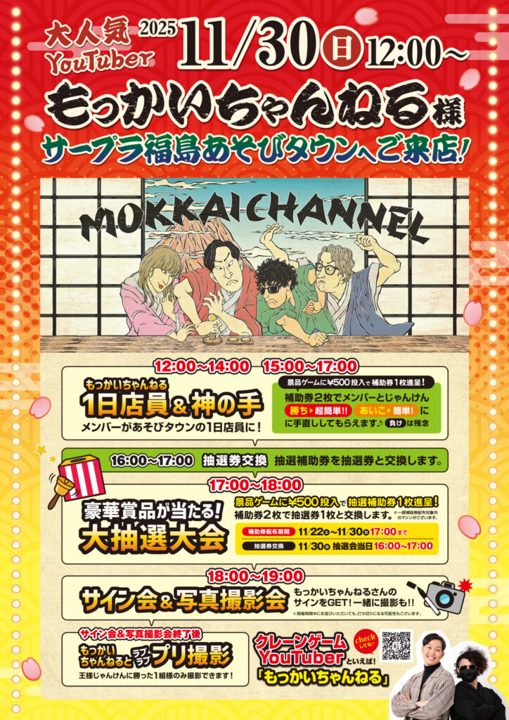 サープラ福島あそびタウンへもっかいチャンネル様ご来店♪ EVENT お知らせ 2025-11-17 @3rdplanet_official 11月30日サープラ福島にもっかいちゃんねるさんが来る@‼️#ゲーセン #クレーンゲーム #ufoキャッチャー #游戏厅 #娱乐 @もっかいちゃんねる ♬ にぎにぎにじたうん! – NIJISANJI & 周央サンゴ 2025年11月のおすすめプライズ情報! 2025年12月のおすすめプライズ情報! お知らせ一覧