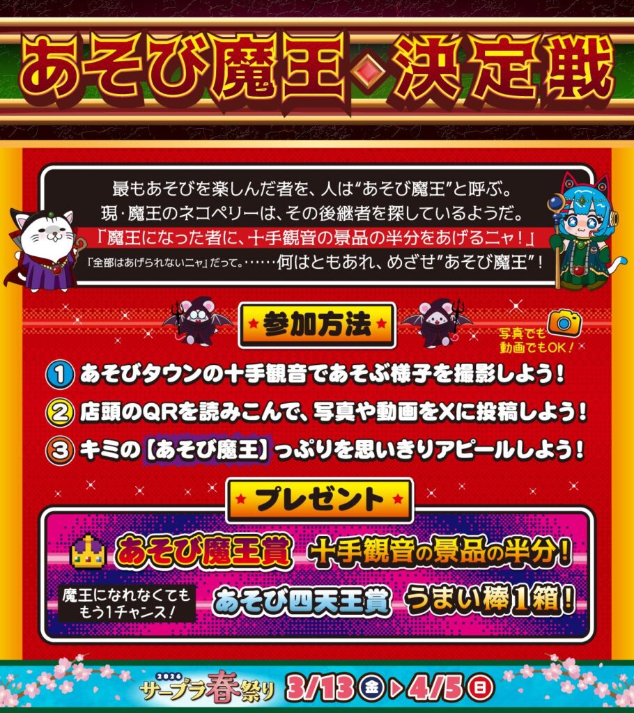 見事「あそび魔王」に選ばれた方には、千手観音の景品の半分をプレゼント🎁