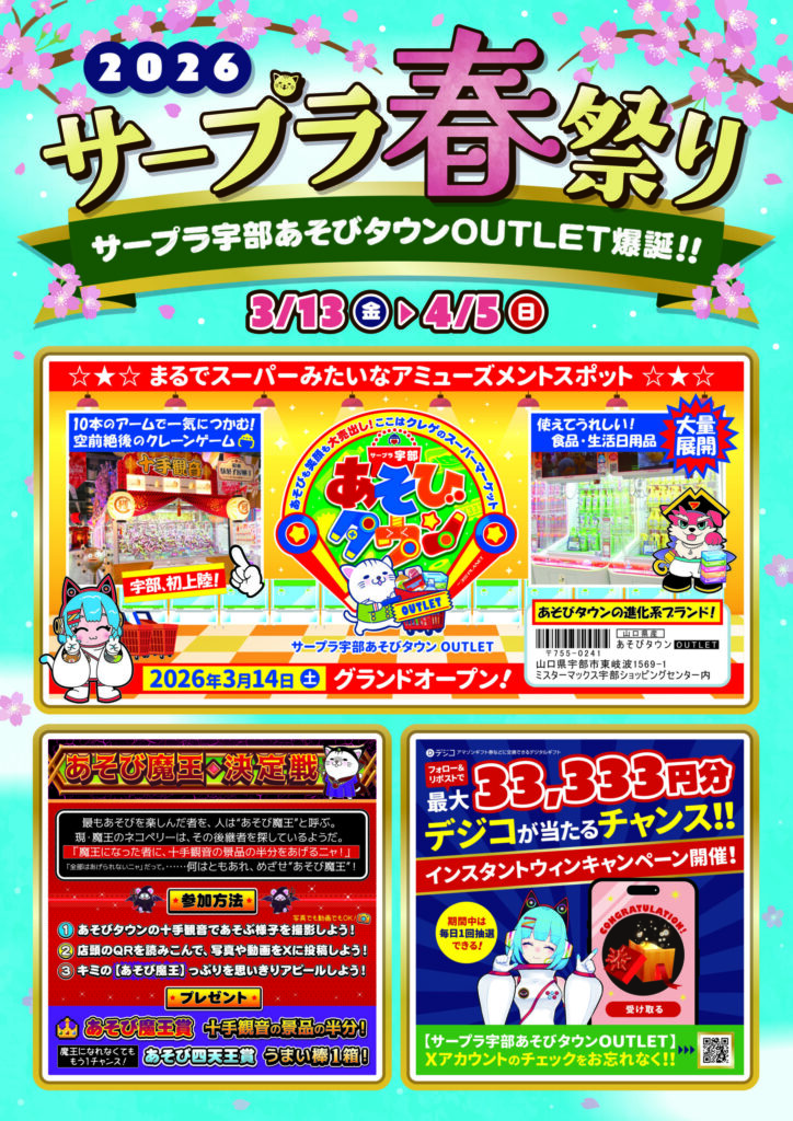 この春、サープラ宇部あそびタウンOUTLETが誕生🎉